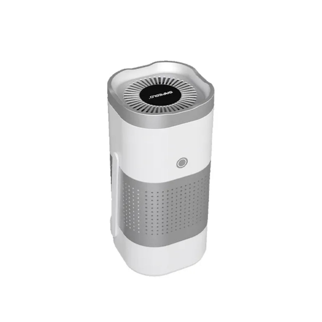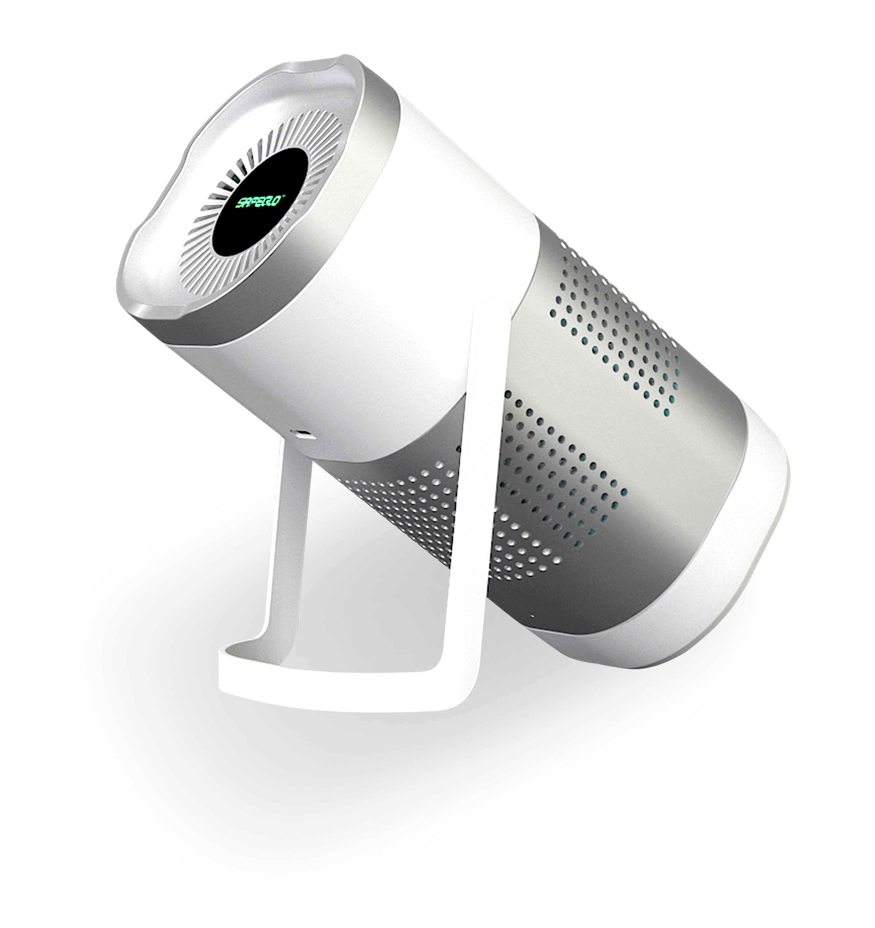 With its rechargeable battery, PEP offers 3 hours of continuous protection wherever you go. It can operate and recharge simultaneously through a USB connection, ensuring that you always have a purified personal air zone. It is about the size of a coffee cup or water bottle, so you can use it in your office space, on the train, in an Uber. Your Personal Environmental Purifier for all spaces. Disinfection can reach 10 cubic feet and has a noise level of only 30dB.